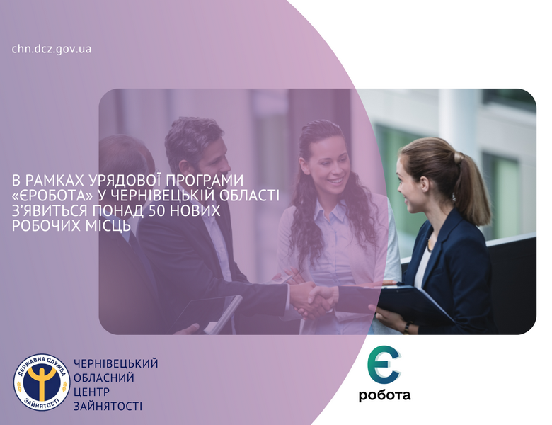08 вересня 2022В рамках урядової програми «єРобота» у Чернівецькій області з’явиться понад 50 нових робочих місць