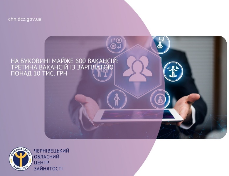 29 червня 2023На Буковині майже 600 вакансій: третина вакансій із зарплатою понад 10 тис. грн