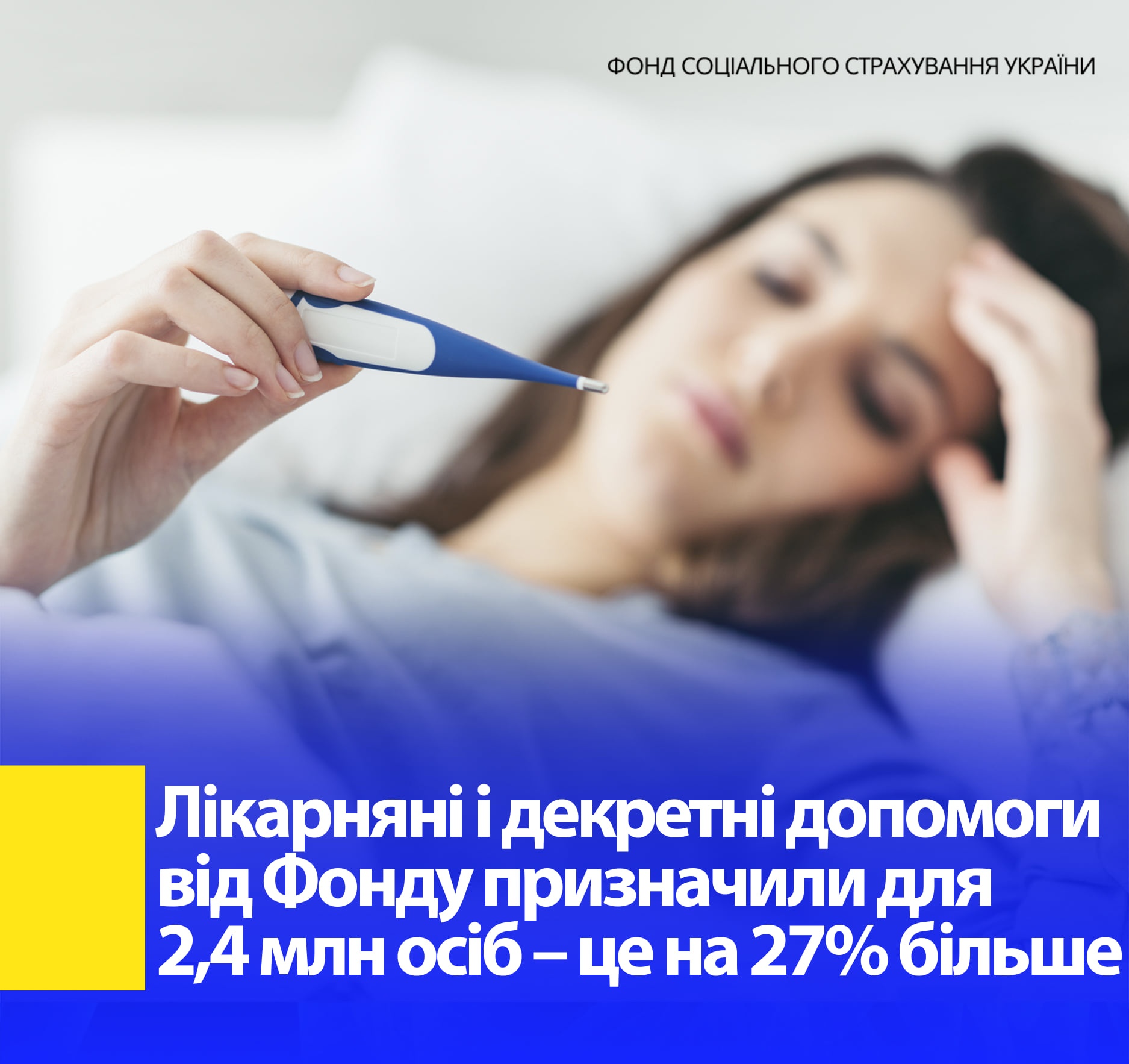Лікарняні і декретні допомоги від Фонду призначили для 2,4 млн осіб за підсумками 10 місяців