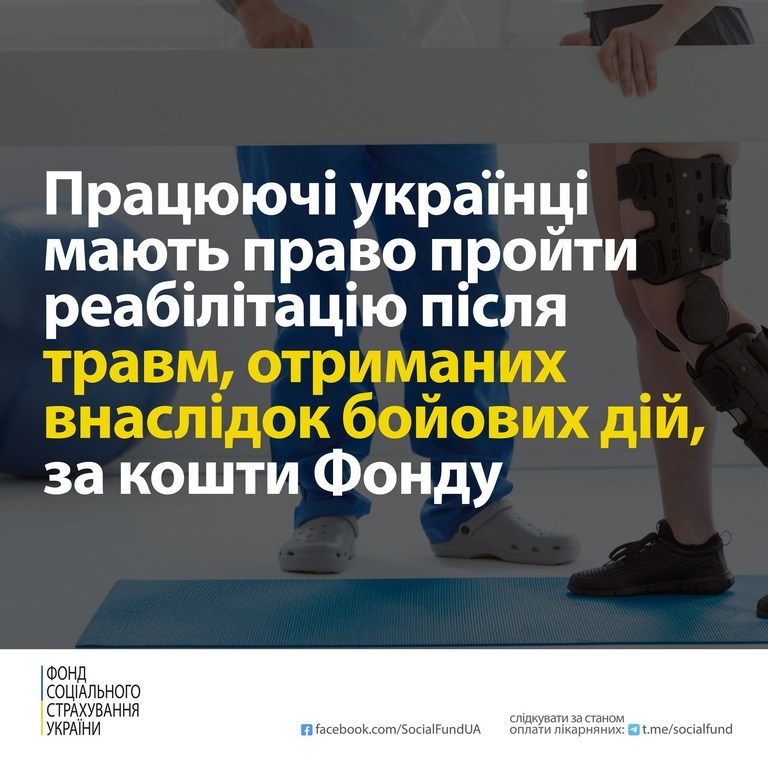 09 вересня 2022Працюючі українці мають право пройти реабілітацію після травм, отриманих внаслідок бойових дій, за кошти Фонду