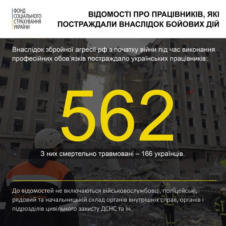 19 вересня 2022Внаслідок бойових дій постраждали 562 працівники, 166 з них загинули