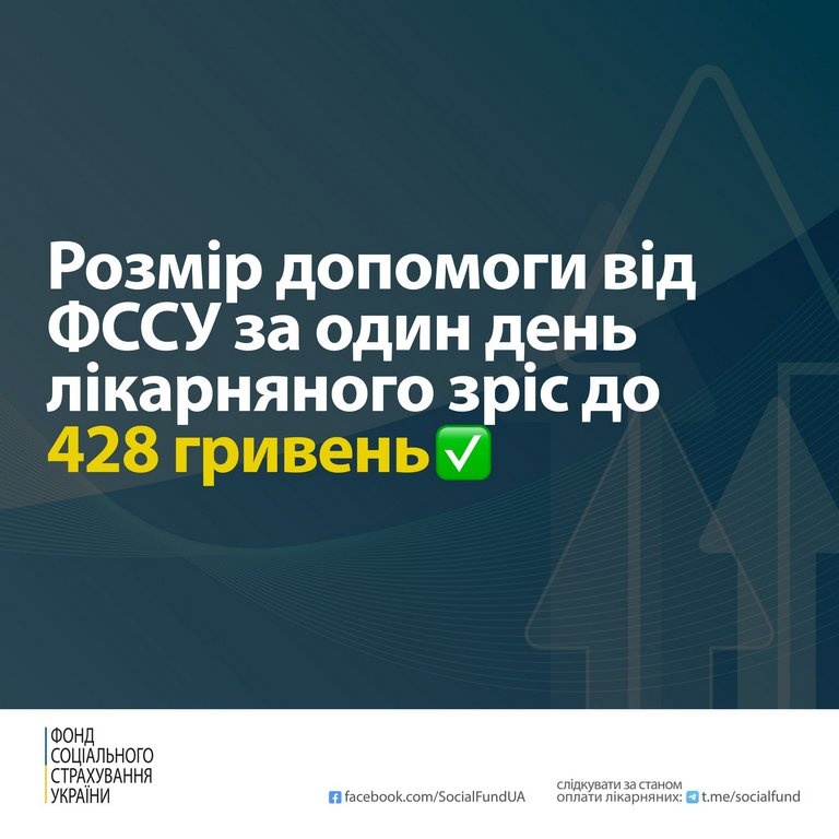 20 вересня 2022Розмір допомоги від ФССУ за один день лікарняного зріс до 428 гривень