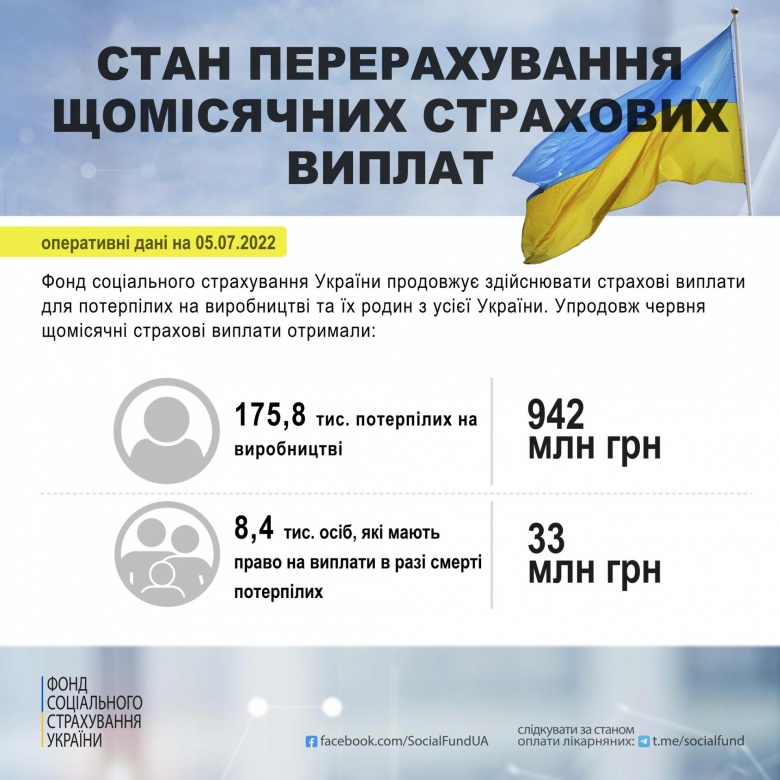 06 липня 2022Фонд виплатив 975 мільйонів гривень щомісячних страхових виплат у червні