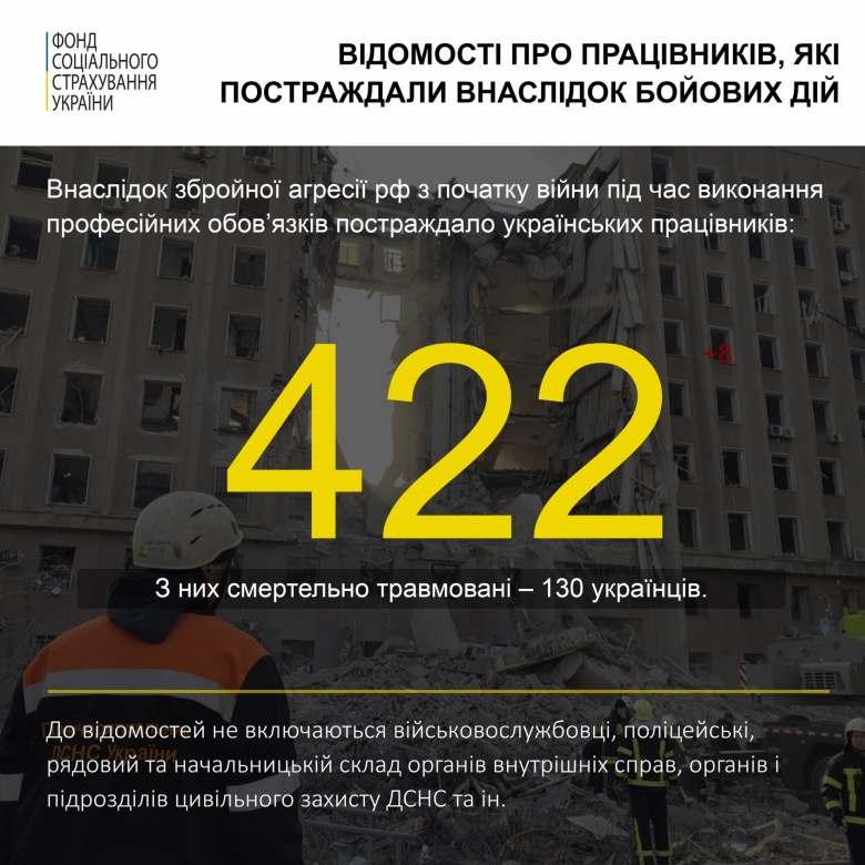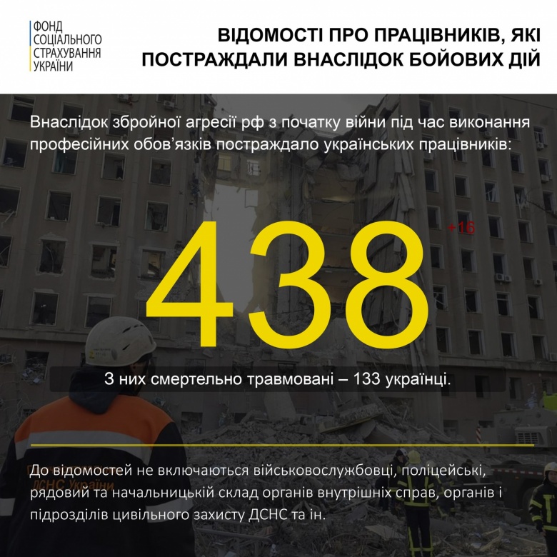 18 липня 2022Внаслідок бойових дій постраждали 438 працівників, 133 з них загинули