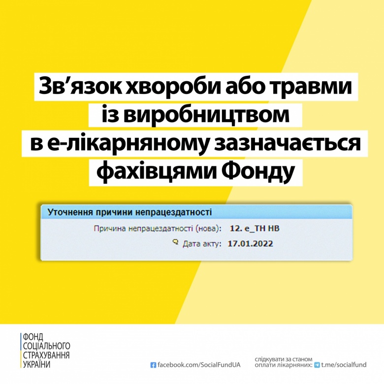 13 липня 2022Позначка зв’язку хвороби або травми із виробництвом в е-лікарняному встановлюється лікарями Фонду