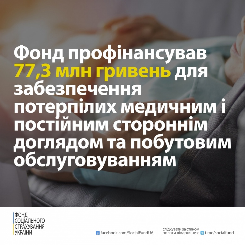 27 липня 2022Фонд профінансував 77,3 млн грн для забезпечення потерпілих медичним і постійним стороннім доглядом та побутовим обслуговуванням