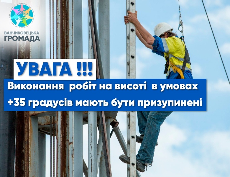 25 липня 2023Виконання робіт на висоті в умовах +35 градусів мають бути призупинені