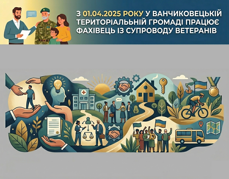 14 квітня 2026З 01.04.2025 року у Ванчиковецькій Територіальній Громаді працює фахівець із супроводу ветеранів війни та демобілізованих осіб