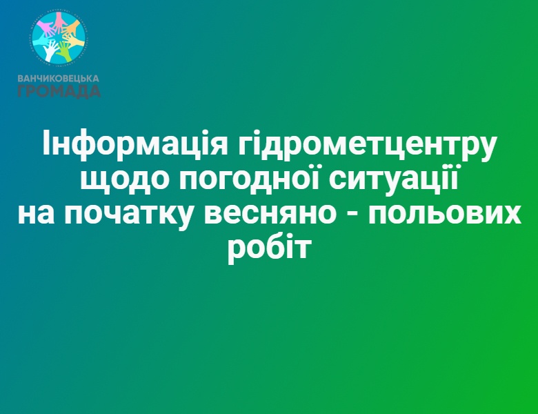 Інформація гідрометцентру щодо погодної ситуації на початку весняно - польових робіт
