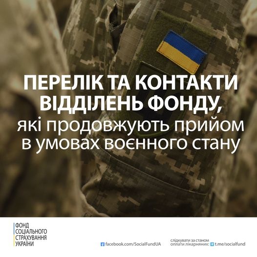 Перелік та контакти відділень Фонду, які продовжують прийом в умовах воєнного стану